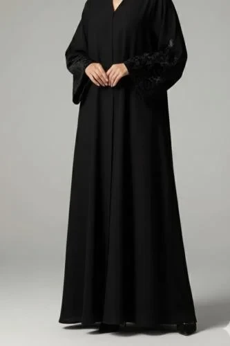 | عباية رسمي كريب كوبا لون اسود بنقشه |