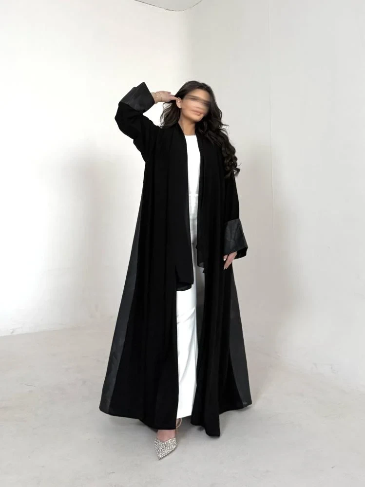 | عباية رسمية كريب لنن لون اسود لاين ابيض |